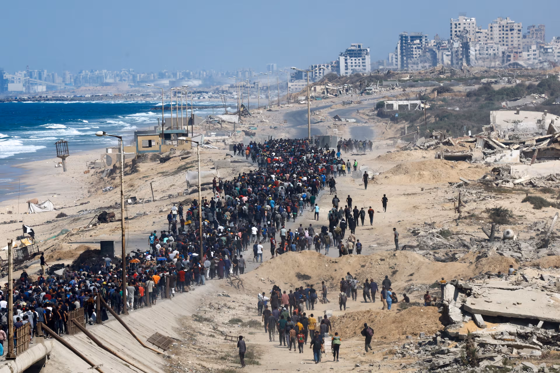 Палестинцы, эвакуированные на юг Газы по приказу Израиля во время войны, возвращаются на север после вступления в силу режима прекращения огня.