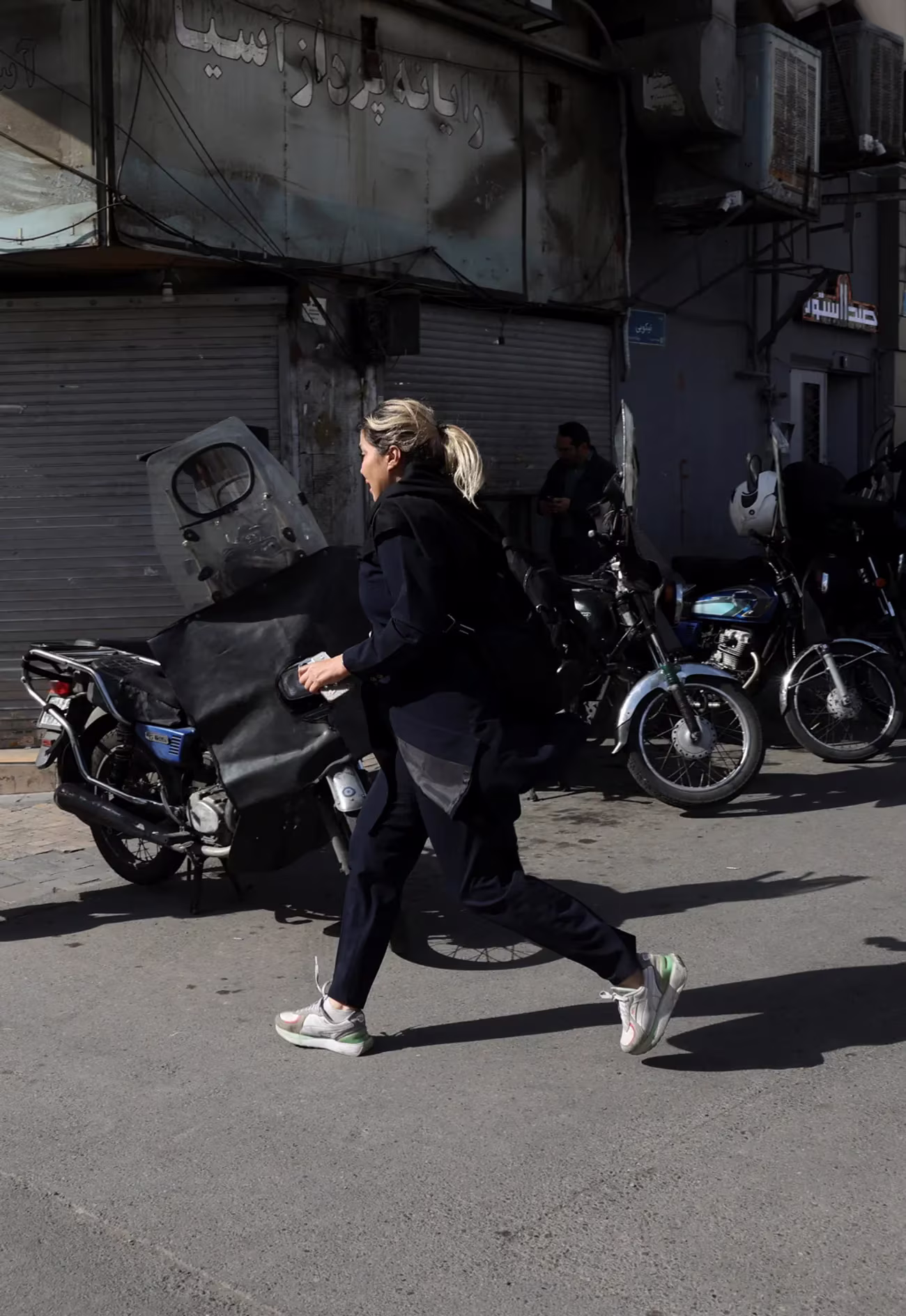 Жительница Тегерана бежит в укрытие.