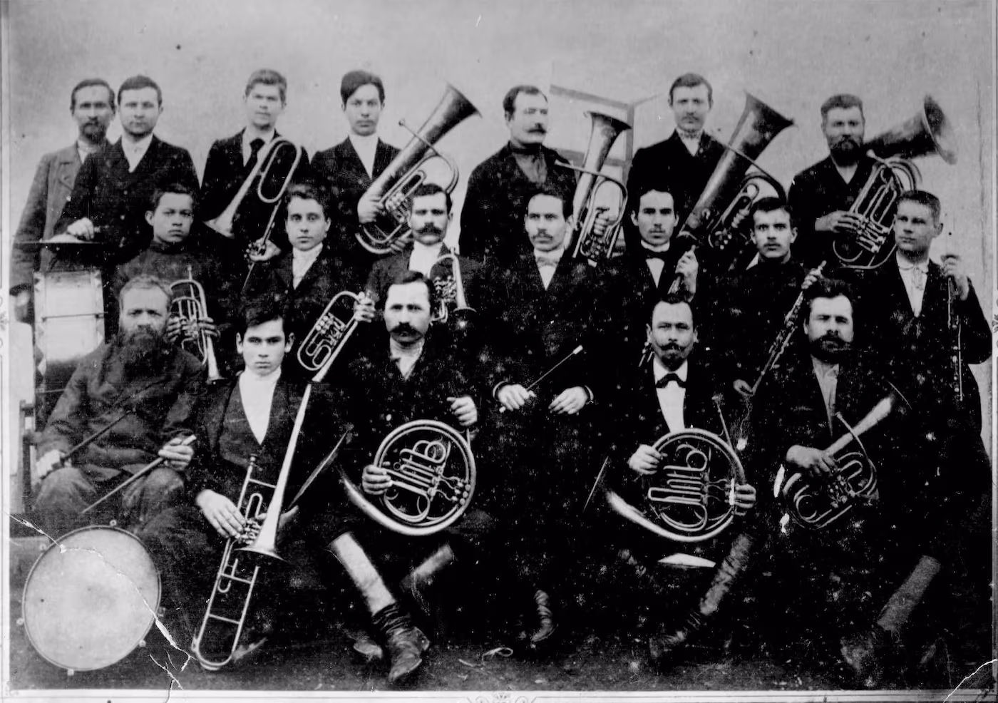 Composer Mykola Leontovych is pictured at the center with the ensemble he conducted in Pokrovsk. Early 20th century.
