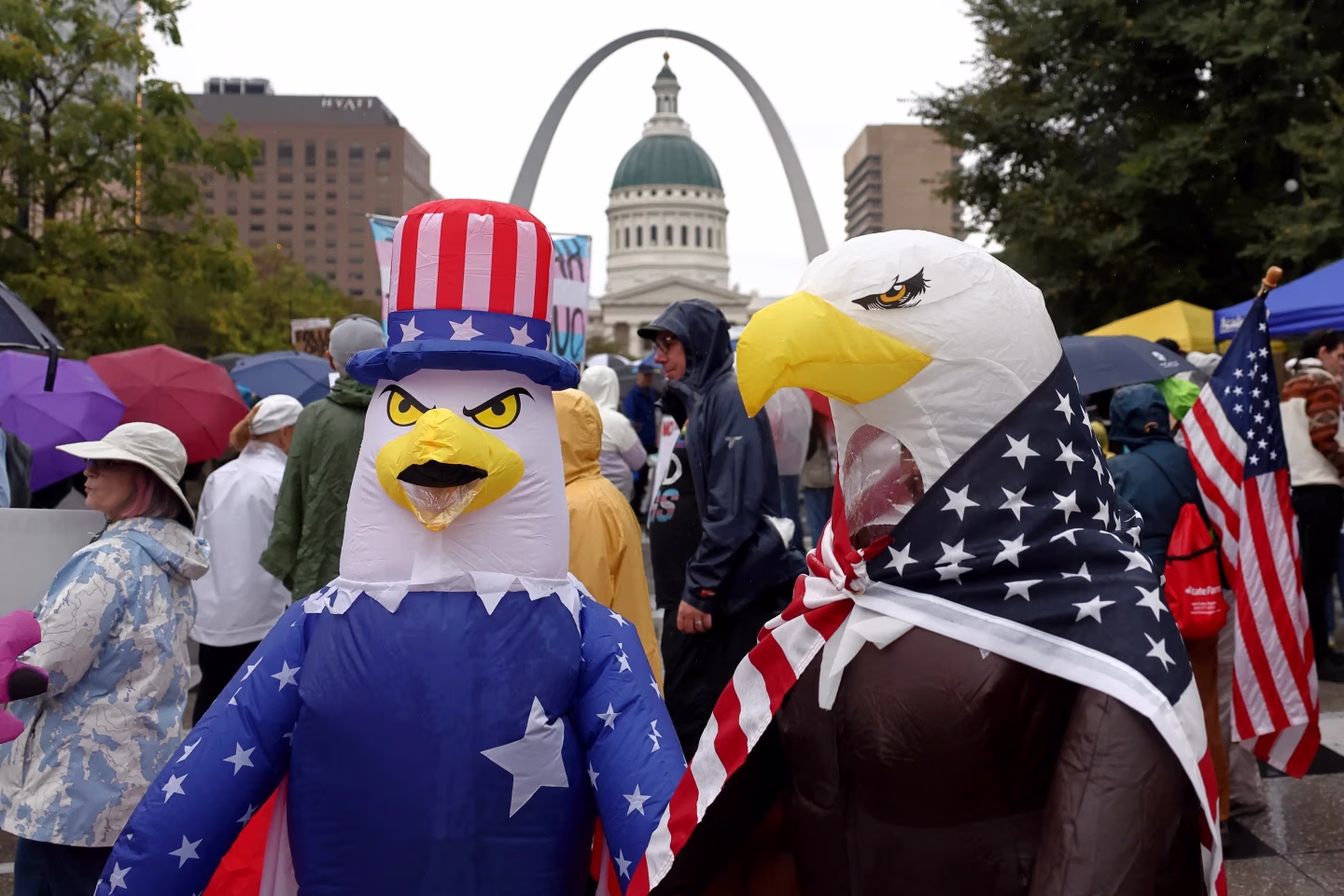 In Chicago’s Grant Park, at Butler Field, at least ten thousand people gathered—many carrying placards denouncing federal immigration policy and mocking the president. Broadcasters warned viewers in advance that they could not vouch for the language appearing on the signs. Later, the Chicago Tribune estimated the crowd at around one hundred thousand.