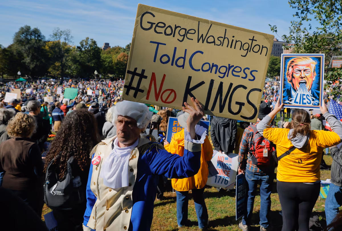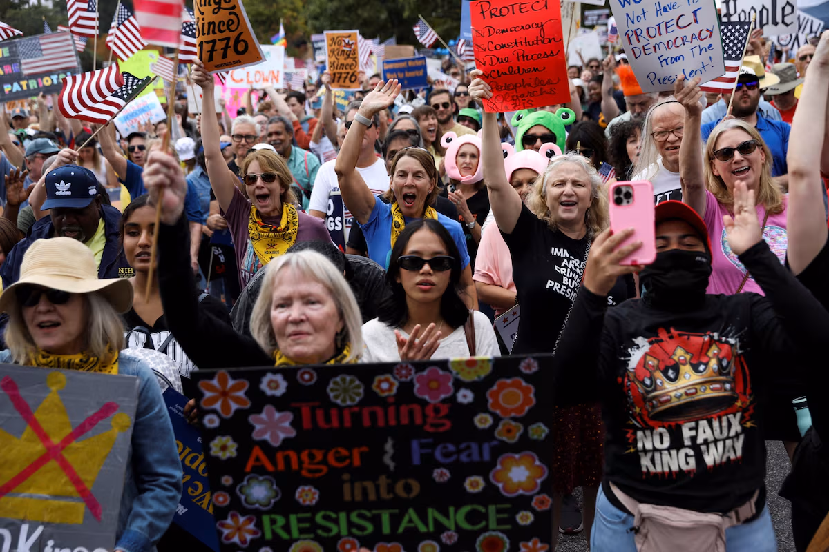 On Saturday, mass protests against Donald Trump’s administration took place across all fifty U.S. states. Demonstrators rallied around the message that the country is sliding toward authoritarianism and that “there should be no kings in America.”