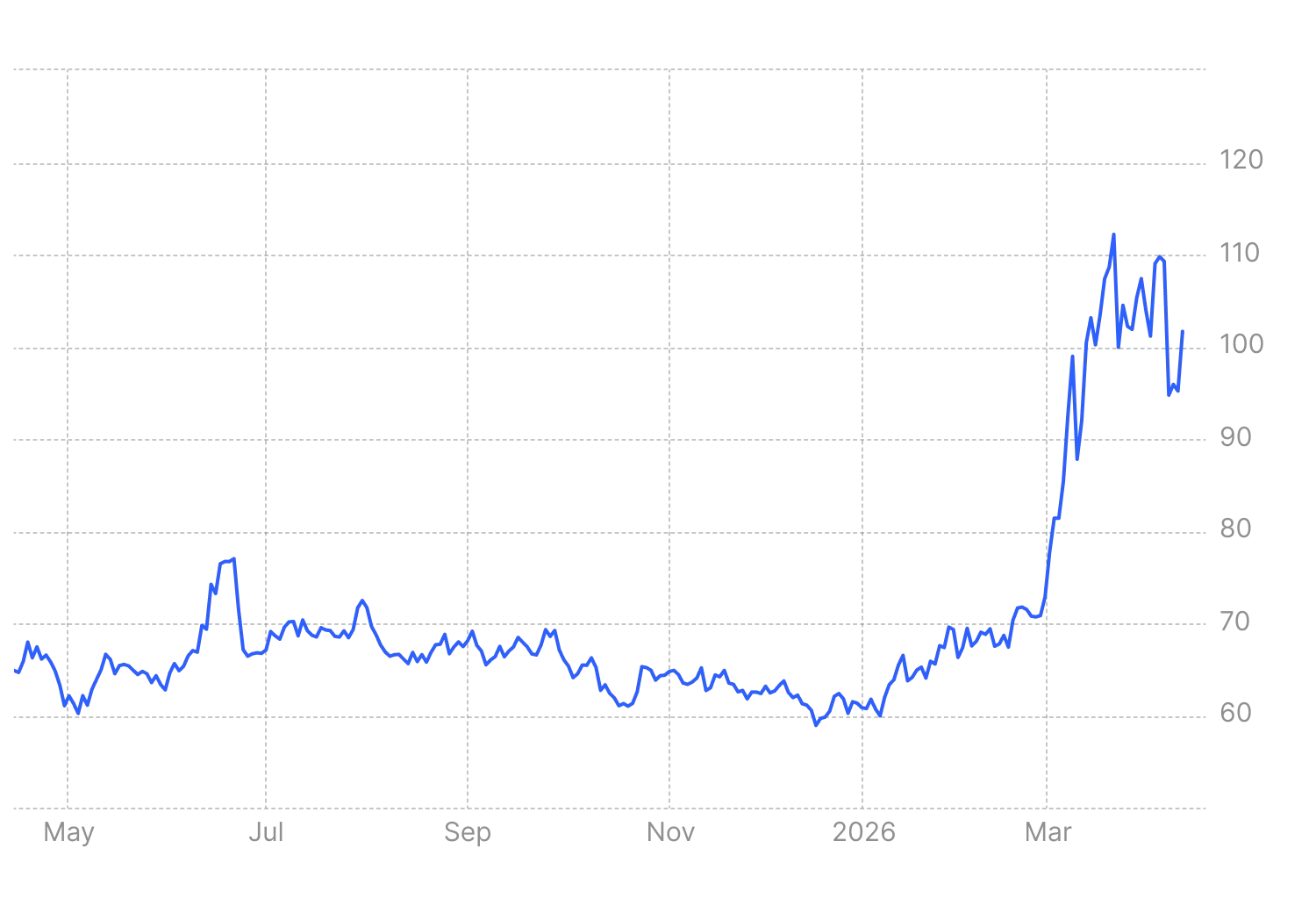Analysts at JPMorgan Chase had noted as early as last week that oil prices were likely to remain above $100 a barrel in the second quarter before potentially easing in the second half of the year.
