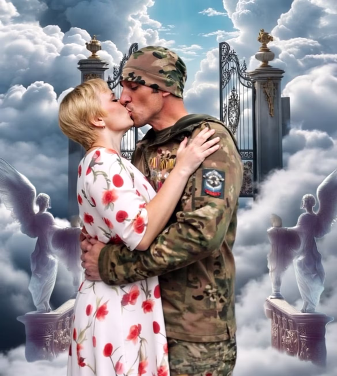 As a rule, the process follows a similar script. The client sends a photograph of her husband—sometimes several images and a voice message. The creator uploads the materials into generative services and then manually refines the result—removing defects, adding music, captions, military symbolism, or text.